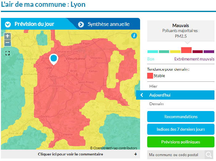 Par exemple voici les valeurs pour la région lyonnaise :